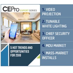Mass-market smart-home services, converging physical and digital security, tunable white lighting, MDU installs, and video projection comprise CE Pro’s Top 5 Home Technology Trends and Opportunities for residential integrators in 2018.