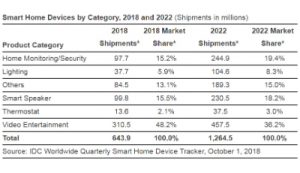 International Data Corporation report says smart speaker and other smart home devices sales will grow at quick clip over the next five years. Smart Home Devices Market Forecast to Be Growing Globally at 31% Annual Clip (SSI Title)