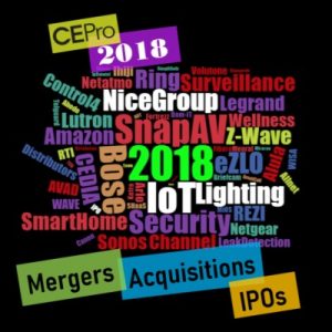 2018 was big for mergers, acquisitions, IPOs, spinoffs, and other transactions in home electronics, including IoT, smart home, lighting, security, audio/video, wellness and the installer channel.