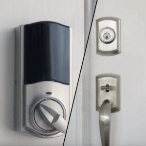 Kwikset Convert is a Z-Wave connected smart lock that replaces an interior deadbolt but uses the existing exterior lock hardware.